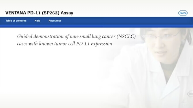 5章:演習実際の非小細胞肺癌11例について、バーチャルスライドを用いてベンタナ OptiView PD-L1(SP263)の判定を自己学習できます。
